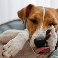 • Chewing or licking paws